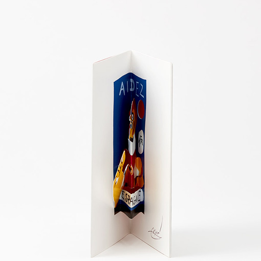 Mini book with original text and 42 illustrations published in a «matchbox» format and composed of a zigzag folding inner booklet and a box with an outer cover.